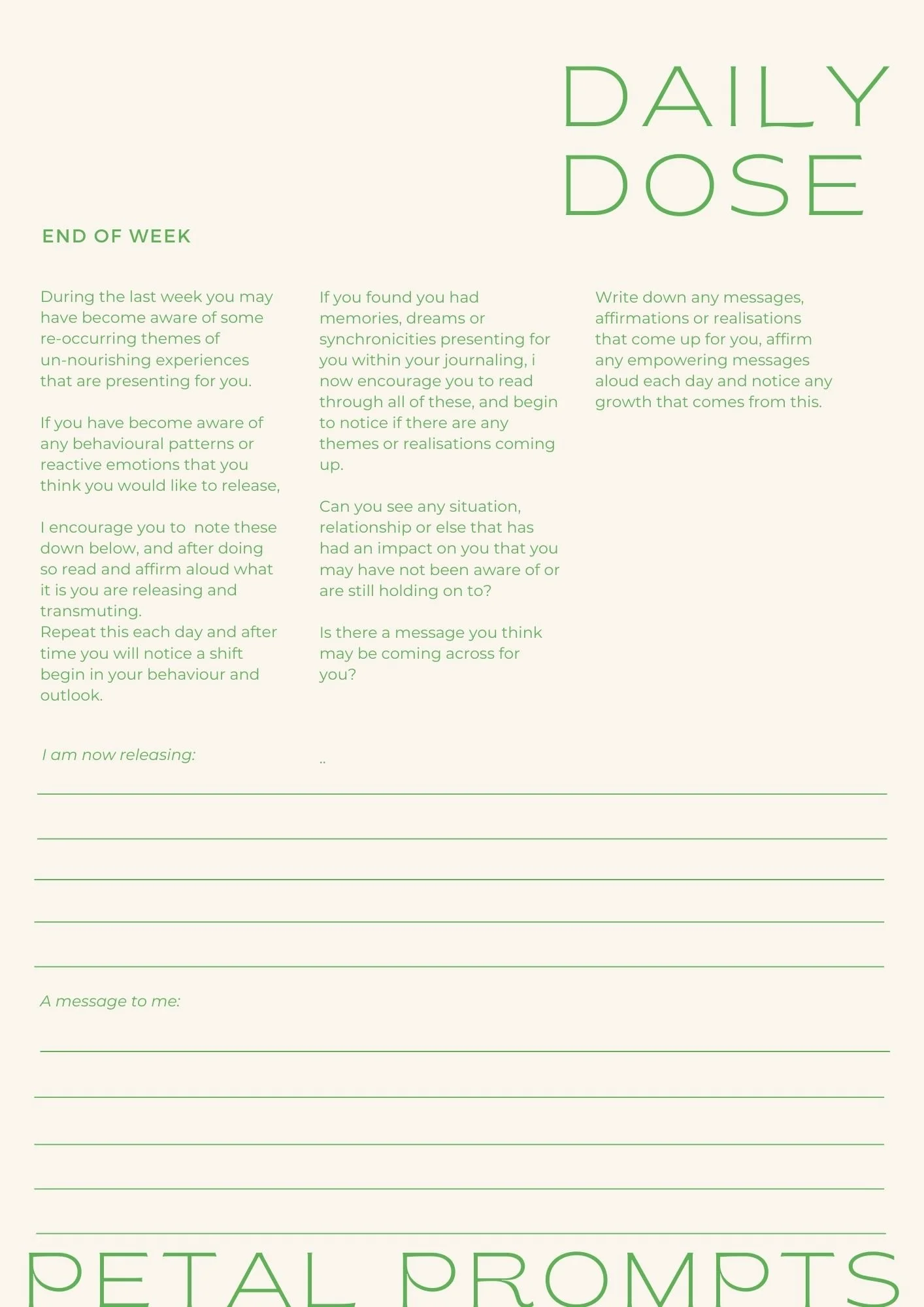 Petal Prompts - Daily Dose Recommended while using free-fall, ready made and co-create remedies.DOWNLOAD FOR PRINT HERE.